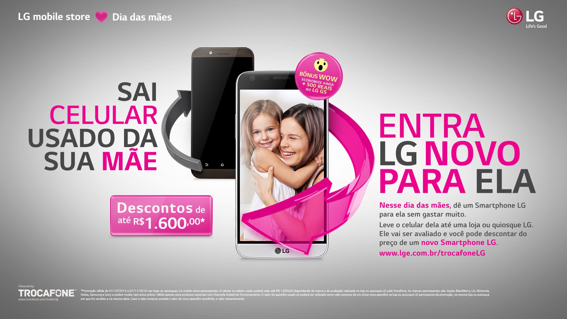 Campanha para incentivar a troca de Smartphones usados de outras marcas pelos aparelhos da LG.