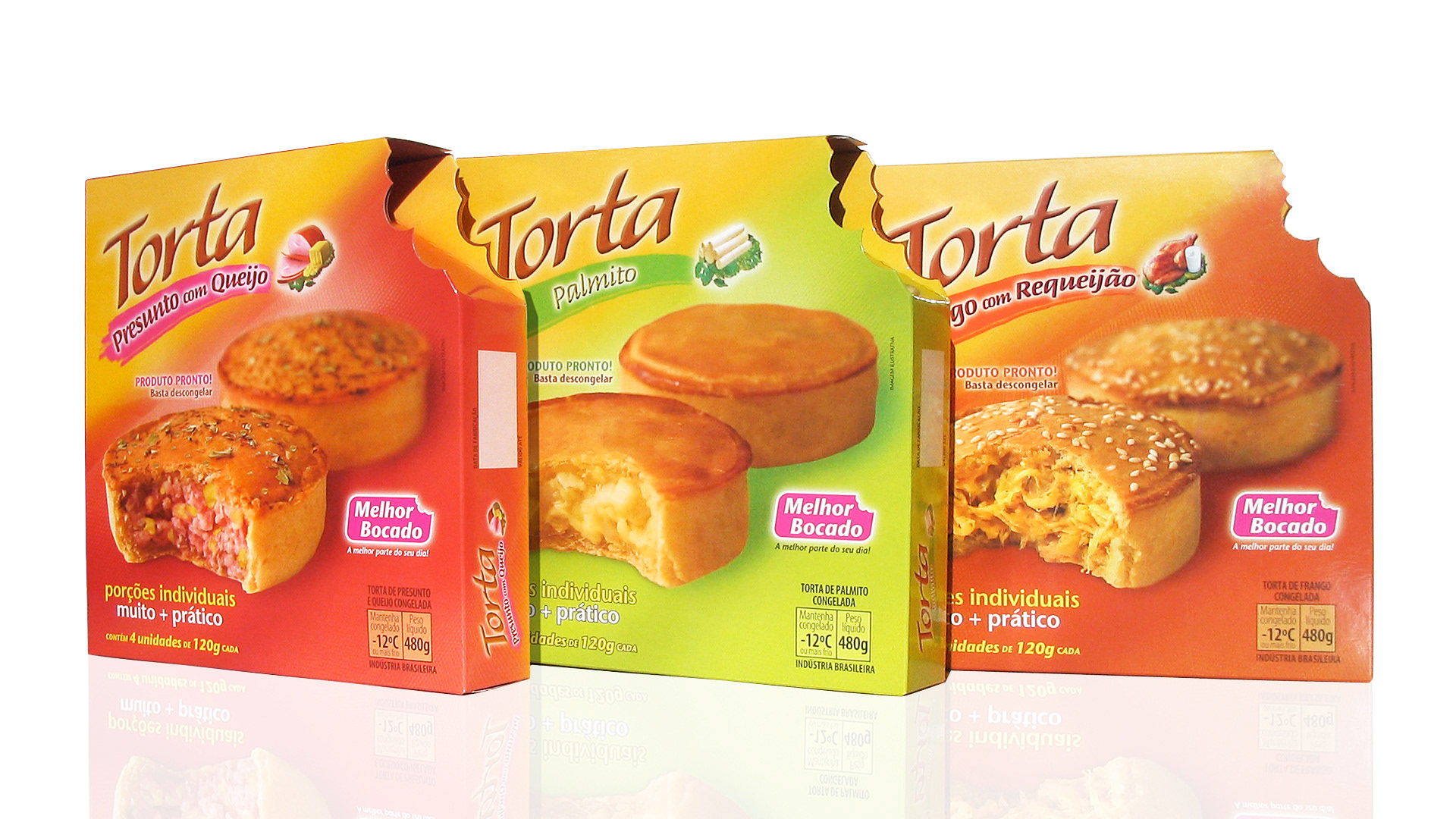 Criação e desenvolvimento de nova linha de embalagens para Tortas, Quiches, Donuts, Mini Donuts e Muffins da Melhor Bocado.